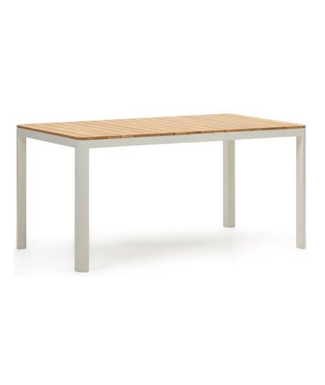 COVO mesa 160x90 o 200x100 cm en aluminio blanco y tapa de madera maciza de teca para interior y exterior