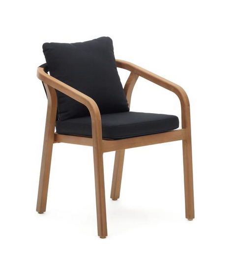 TANAY silla apilable con reposabrazos de madera maciza de eucalipto y cuerda y cojines para exterior