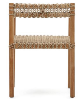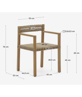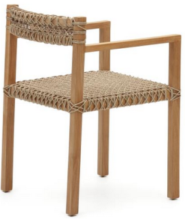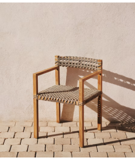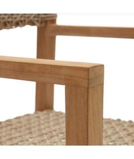 CHIN silla con reposabrazos de madera maciza de teca y cuerda para exterior