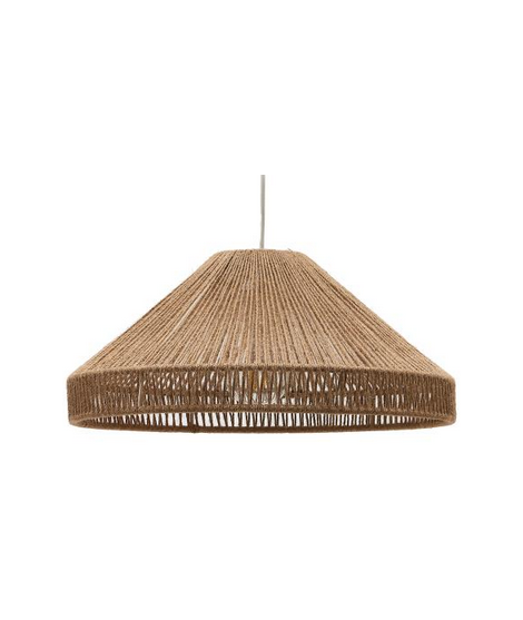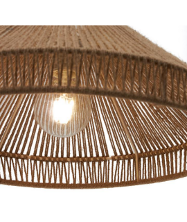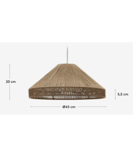 Un particular plafón para lámpara de suspensión de gusto étnico, un mueble fabricado en yute y metal negro. Un género refinado con un fuerte diseño y carácter. Un encantador estilo colonial rústico. A continuación encontrará el accesorio soporte para la pantalla.