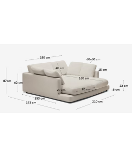 AREM Sofá 3 plazas 210x193 cm con doble chaise longue en chenilla beige