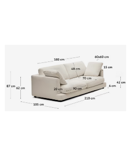 ISAO Sofá 3 plazas 210 cm en chenilla beige
