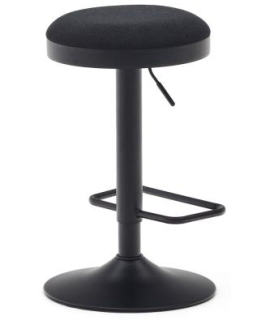 WILSON asiento h 63-84 cm en tejido chenilla negro taburete de diseño de pistón de acero negro mate ajustable en altura