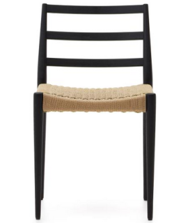 CHENS Silla de roble macizo con acabado en negro y asiento de cuerda