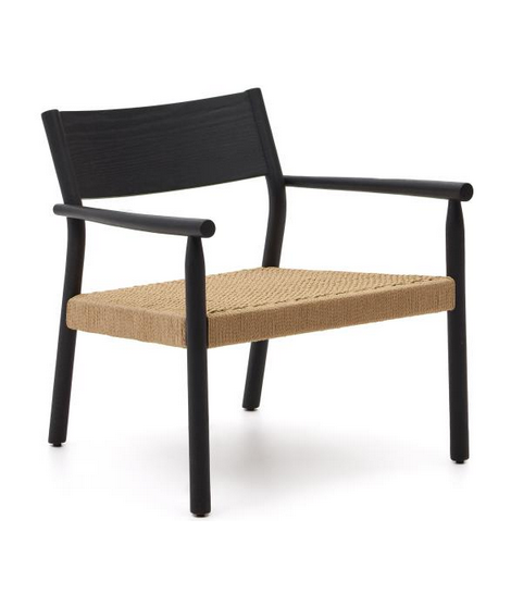FLAMBE sillón de roble macizo con acabado negro y asiento de cuerda