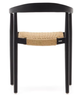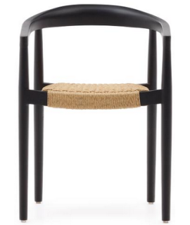 Preciosa y muy cómoda silla con reposabrazos de línea sencilla y de diseño. Para amueblar sus habitaciones con gusto y convertirlas en una obra maestra. Con estructura de madera maciza de teak acabado negro y asiento de cuerda beige. Refinado y particular, hace que el ambiente en el que se coloca sea cálido y acogedor, también ideal para uso en exteriores.