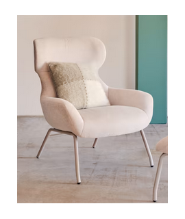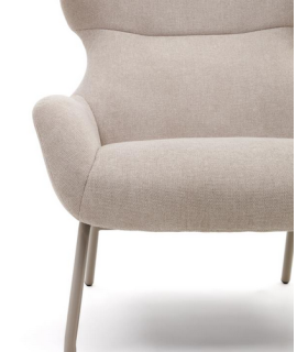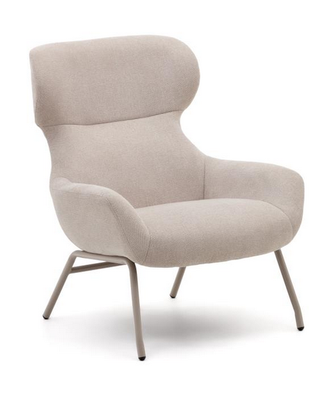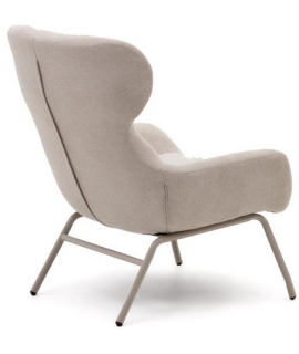 Precioso y refinado sillón una línea importante que da prestigio a tu mobiliario. Acolchada y revestida en tejido de chenilla beige y con patas de metal pintado beige. Un sillón envolvente con respaldo alto, muy cómodo y elegante.
