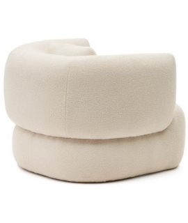 Con un diseño innovador, este cómodo sillón de línea dulce. Confección en tejido de borreguillo color crudo. Un sillón armonioso y refinado. A continuación se muestran los accesorios de la misma línea a juego. Todas las medidas están en la foto de la ficha técnica.