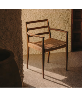 RESORT Silla con reposabrazos en acabado roble macizo nogal y asiento en cuerda