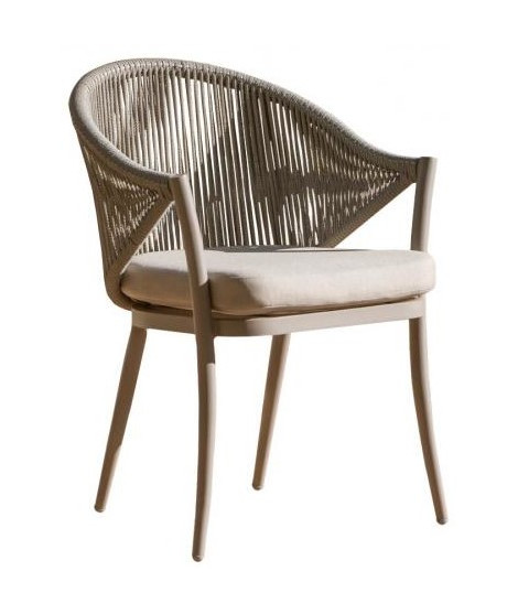 ALESTER Silla con reposabrazos en aluminio y cuerda y cojín de asiento incluido para jardín interior y exterior y terrazas