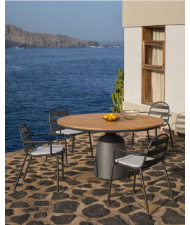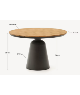 CRETA Ø120 Mesa base de aluminio gris y tapa de madera maciza de teca para interior y exterior