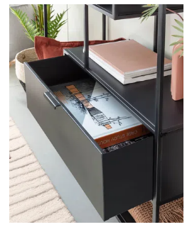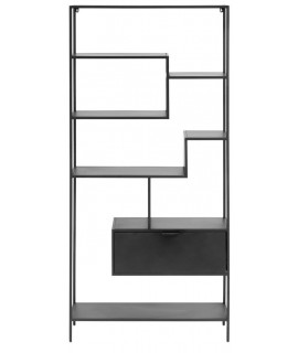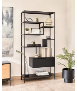 LAMA Librería con estantes y un cajón de diseño industrial de metal negro