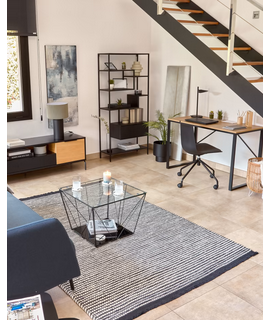 Fabulosa estantería que ocupa poco espacio, para un moderno mobiliario de diseño industrial, intrigante en metal negro con estantes escalonados. También maravilloso en el centro de la sala para dividir dos habitaciones. Un estilo minimalista con un carácter fuerte que proporciona un gusto refinado, ideal para un ambiente joven, un aspecto esencial, práctico y funcional.