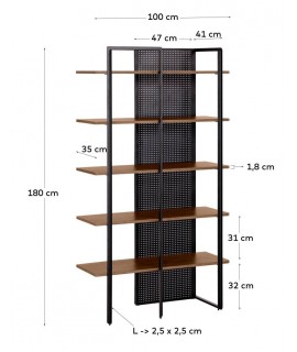 NAGER estantería en nogal y metal negro salón de diseño hogar