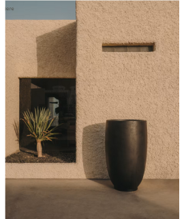 Una línea moderna y limpia para este jarrón o jardinera de hormigón negro. Apto para uso externo.