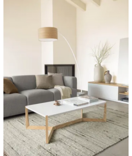 DOUX Mesita 120x60 en fresno y tapa lacada en blanco
