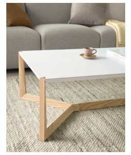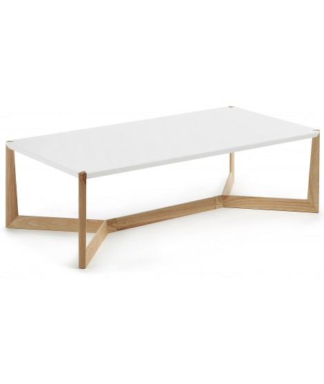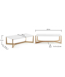 Una mesa de centro moderna, elegante y lineal. Base de madera maciza de fresno y tapa lacada en blanco. Le da a sus muebles un toque de refinamiento y singularidad.
