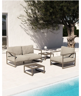 Mesa de centro con estructura ligera de aluminio, realizada en talleres locales, reduciendo las emisiones de CO2 para un menor impacto ambiental. Totalmente de aluminio pintado gris tórtola. El material más resistente y duradero, especialmente indicado para exteriores. Para el hogar, el jardín, el balcón o la terraza, pero también para residencias, clubes frente al mar, hoteles, b & b, establecimientos de baño. Estructura muy fuerte, duradera y resistente a los agentes atmosféricos ya los rayos UV. Elegante y refinado. En la foto de la ficha técnica están todas las medidas. A continuación encontrará los accesorios de la misma línea para combinar.