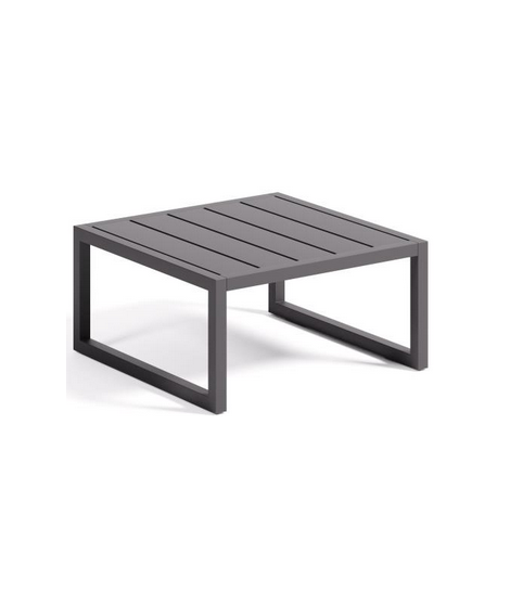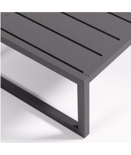 Fabulosa mesa de centro realizada en aluminio pintado color antracita. Con una estructura ligera, simple, limpia y refinada, de gran efecto para sus ambientes interiores y exteriores.
