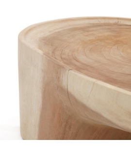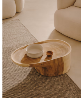 Maravillosa y particular mesa de centro de línea intrigante, apta para interior o exterior. Fabricado en madera maciza tropical procedente de bosques ecosostenibles con deforestación controlada. Fascinante e intrigante, queda perfecto en cualquier lugar de la casa, como complemento de decoración y práctico para colocar un bonito adorno. Cualquier grieta en la madera no es una imperfección, sino parte de la belleza de un complemento totalmente natural.
