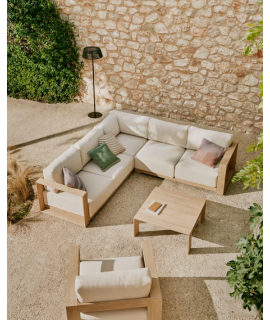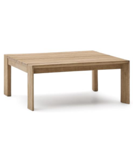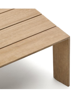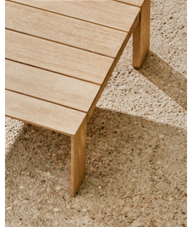 Una mesa de centro de diseño, elegante y refinada, apta para exteriores. Cómoda con sobre de listones de madera maciza de acacia, una madera muy resistente para exteriores. Una línea sencilla que aporta sofisticación a tu jardín o terraza. A continuación encontrarás los complementos de la misma línea a juego.