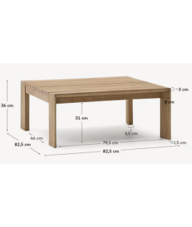 Refinada y moderna, maravillosa mesa de centro con tablero de listones de madera maciza de acacia. Muy resistente, tratado para una larga vida y protección UV, apto para uso en exteriores. Una mesa de centro de diseño para completar tu mobiliario de exterior. A continuación encontrarás los complementos de la misma línea a juego. Todas las medidas están en la foto de la ficha técnica.