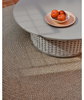 LONDON mesa de centro Ø 99 cm de aluminio y cuerda color gris paloma para terraza jardín de casa