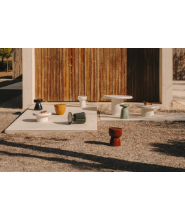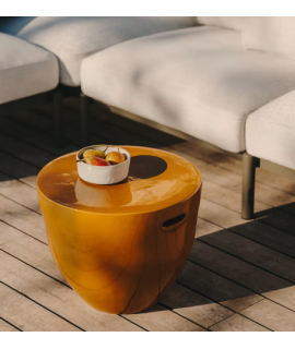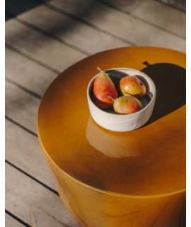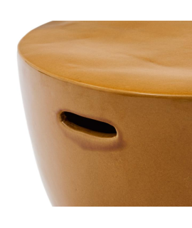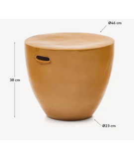 PROPOLI Mesa de centro de cerámica con acabado esmaltado color mostaza Ø 46 cm diseño para interior o exterior