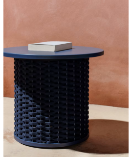 SORRENTO mesa de centro Ø 50 cm de aluminio y cuerda color azul para terraza jardín de casa