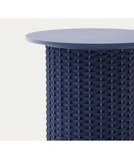 Fabulosa mesa de centro que añade un toque de encanto atemporal a cualquier habitación. Realizado con estructura de aluminio color azul y ratán sintético tejido a mano. Un estilo encantador que destaca por su diseño ligero y contemporáneo. Apto para uso exterior o interior, ideal para jardín o terraza.