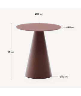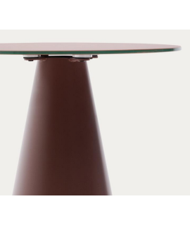 ALEGRA mesita Ø 50 cm tapa de cristal templado y estructura de metal color terracota satinado