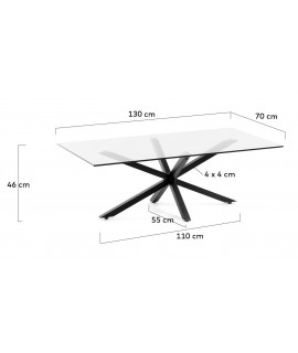 BOBO Tablero de vidrio templado de 130x70 y patas de mesa de metal negro