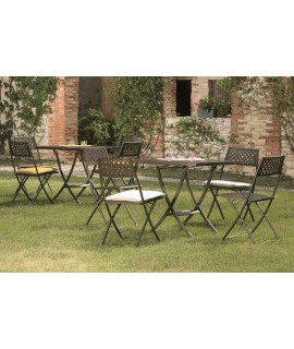 Una línea elegante y refinada para esta mesa de exterior con adornos en la parte superior, con un diseño clásico en clave moderna. Cómodo y resistente a la intemperie, es plegable y práctico de guardar. Da un estilo indiscutible a tus muebles.