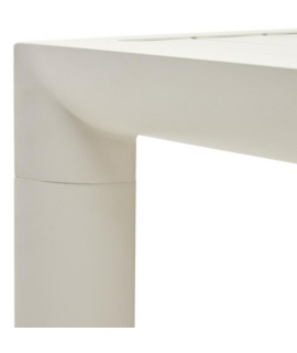 Mesa de 95 cm de altura en aluminio blanco, altamente resistente a la intemperie y a los rayos UV, con una línea fresca e íntima, que aporta refinamiento y prestigio a su ambiente interno o externo. Simple y de diseño, con tapa de lamas. Maravilloso y versátil, apto para el hogar, pero también perfecto para bares, heladerías, cafeterías, restaurantes, discotecas, hoteles, establecimientos balnearios, chalés, casas de campo.