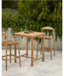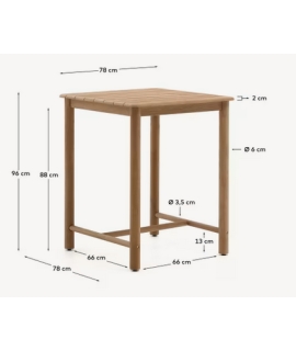 Una mesa alta muy atractiva que juega con el contexto de sus acabados, con un diseño minimalista, sencillo y elegante. Fabricada con un tablero de listones, completamente de madera maciza de acacia, altamente resistente a la intemperie.