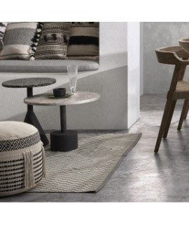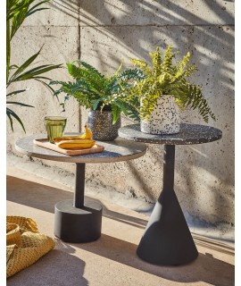 MELINA de 55 cm de diámetro Mesa de centro redonda para uso en exteriores en piedra cerámica y metal