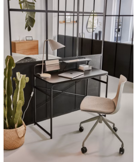 Escritorio particular e intrigante, práctico y funcional con un estante para dar más espacio. Hecho enteramente de metal pintado negro. Un maravilloso mueble con una estética simple pero impresionante. Perfecto para muebles modernos, vintage o nórdicos.