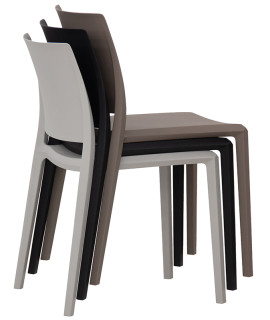 Silla apilable para el hogar o bares, heladerías, cafeterías, restaurantes, locales frente al mar, hoteles y resorts de playa. Fabricada con estructura de polipropileno, disponible en varios colores. Líneas sencillas y limpias. Perfecta para exteriores, ya que es muy duradera, práctica y fácil de manejar.
