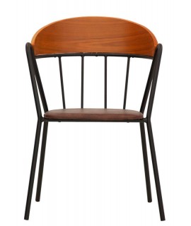 Práctica y resistente silla con reposabrazos, con fuerte estructura metálica, respaldo en madera de nogal y asiento con cojín de eco-cuero. Gracias a la fuerte estructura, permite su uso por personas con un peso importante. Una silla maravillosa, una línea de vinificación industrial para el hogar, pero también adecuada para el mobiliario de su bar, cafetería, heladería, restaurante, club o pub.