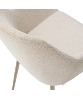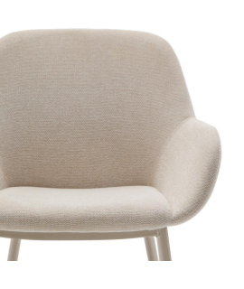 BING Silla con reposabrazos en tejido efecto chenilla beige y patas de metal beige