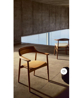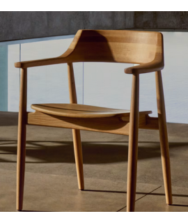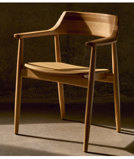 BUROMSKY Silla con reposabrazos en madera maciza de roble acabado natural diseño hogar