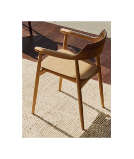 Hermosa silla con reposabrazos con estructura de roble natural macizo. Con certificación de producción ecológicamente segura y responsable con el medio ambiente. Madera certificada procedente de gestión forestal responsable. Una línea tradicional revisitada en clave moderna hace que esta silla sea elegante y refinada. Adecuado para cualquier tipo de mobiliario, desde el clásico al moderno. Carga máxima 130 kg. Todas las medidas estan en la foto de la ficha técnica.