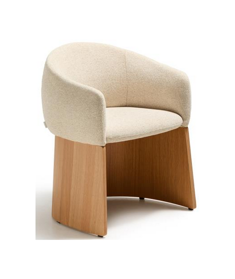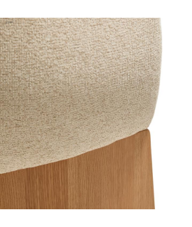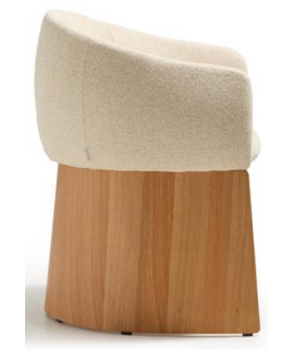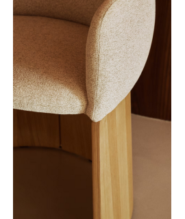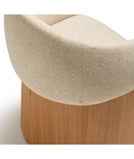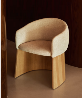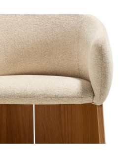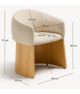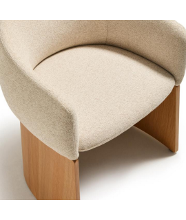 MALISA Silla con reposabrazos en chenilla hidrófuga beige y chapa de roble