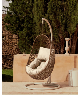 CULT Sillón colgante en ratán tejido con estructura de acero y cojines incluidos para interior o exterior