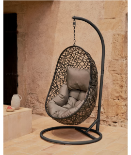 TICTAC Sillón colgante en ratán tejido con estructura de acero y cojines incluidos para interior o exterior