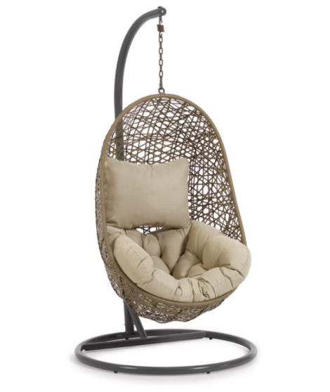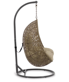 SOLO Sillón colgante en ratán tejido con estructura de acero y cojines incluidos para interior o exterior