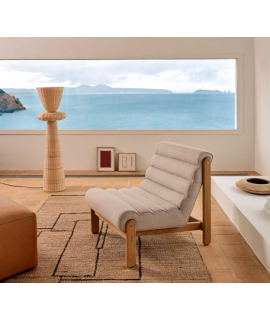 Espléndida y refinada, la originalidad de este sillón es incuestionable. Una nueva forma de concebir el diseño, con estructura de madera maciza de roble, acabado cepillado natural y revestimiento en tejido eco borrego blanco. Fascinante en el salón, dará un toque único y refinado a su ambiente. Para decorar con un gusto sobrio y moderno.
