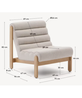 Toda la tranquilidad de un asiento cómodo y relajante, con materiales resistentes. Ideal para regalarte un merecido momento de relax y sentirte mimado. Fuerte estructura de madera maciza de roble con acabado cepillado natural y tapizado en tela eco-shearling blanca. Todas las medidas están indicadas en la foto de la ficha técnica.
