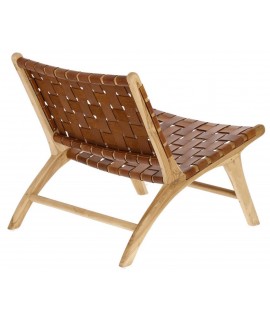 MARIKA Sillón vintage de madera maciza y tiras de cuero marrón