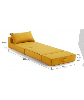 Una nueva forma de amueblar con este agradable sillón cama con respaldo y cojín INCLUIDO. En suave y resistente tejido antimanchas, desenfundable y lavable. Se abre fácilmente y se convierte en una cómoda cama de espuma de poliuretano de 16 cm de altura. Maravillosa gama de colores: antracita, gris, rosa o mostaza. Todas las medidas en la foto de la ficha técnica haciendo scroll con la flecha en las fotos.